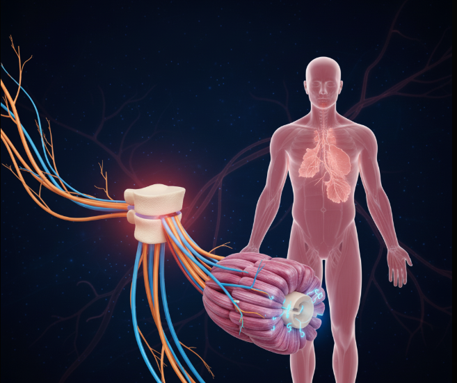 Un problema en un segmento medular (por ejemplo, por una disfunción vertebral) puede manifestarse en todos los tejidos inervados por ese nivel: